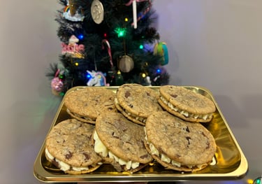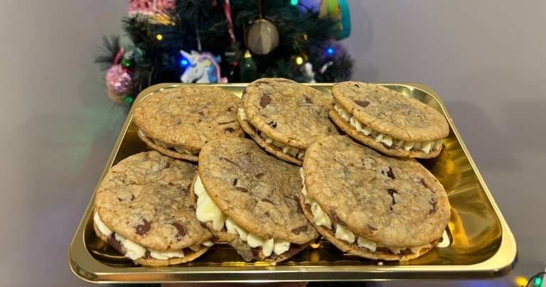 Pasimėgaukite mūsų neatsispiriamais sausainių sumuštiniais, gaminamais rankomis su meile. Kiekvieną gardų skanėstą sudaro du auksinės spalvos, minkšti sausainiai, dosniai pertepti švelniu, aksominiu sviestiniu kremu. Šie skanėstai puikiai tinka šventėms, dovanoms artimiesiems ar tiesiog prabangiam pasilepinimui sau. 6 cm skersmens, jie neabejotinai pradžiugins ir akį, ir skonio receptorius.